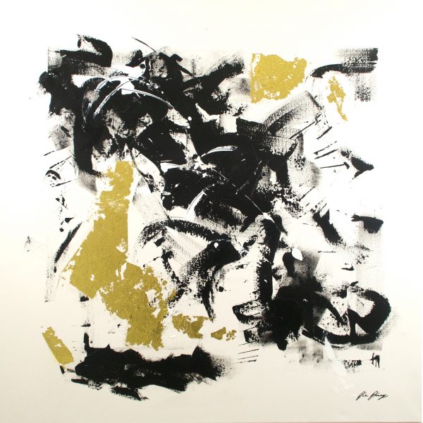 Textured mixed media original abstract with 22ct Gold Leaf.